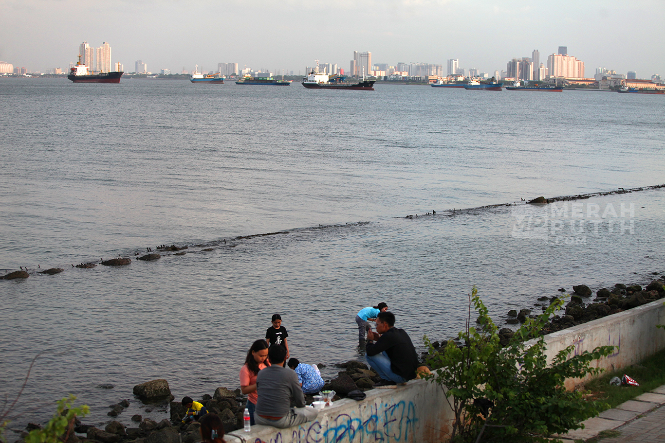 Warga pesisir Teluk Jakarta memanfaatkan tanggul laut untuk berwisata air menghabiskan waktu sore di akhir pekan. Suasana angin dan deburan ombak menjadikan tanggul laut menjadi alternatif wisata gratis untuk menikmati keindahan garis laut, senja dan kapal-kapal yang melintas.